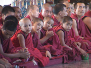 Lobsang arranged for a Tibetan driver, Adu, and a complete three-day tour of the Tibetan colonies, today I visited several monasteries and of course had a visit with Jamyang in the room he has lived for the past 13 years. I was promised the ride to the Tibetan colonies would be 45 minutes... I am learning Tibetan time.. its 45 minutes from Hubli on the highway to the road that runs into the Tibetan colonies... then another hour... past remote Indian villages, children going to schools in uniform and a grandfather teasing kids with the snake he just caught in the front yard. (Yes, I have this on film) The drive is slow due to the narrowness of the road, the potholes, and of course the cattle, goats, water buffalo. The Tibetan colonies are an amazing place, one of several huge tracts of land given to the Tibetans to settle in exile. The colonies at Mungod are made up of 9 colonies. 11,000 Tibetans, and monasteries and nunneries. It has schools, temples, old folks home, hospitals, banana, coconut, mango and rice plantations. Most people walk, the roads are narrow and dusty, the temples beautiful. The people beautiful... and the Tibetans have built it from the ground up.
